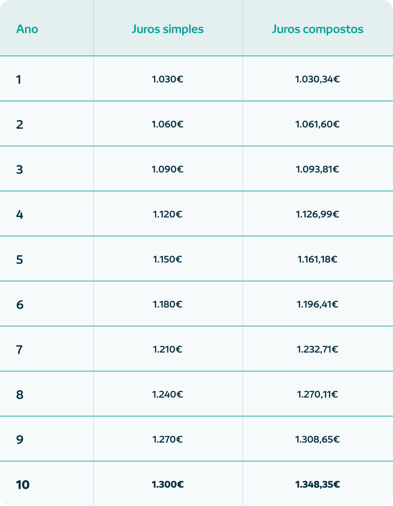 Aqui, introduzimos um conceito essencial na poupança e investimento: os juros compostos, uma ferramenta que permite que as suas poupanças cresçam mais ao longo do tempo. Sem esforço da sua parte.