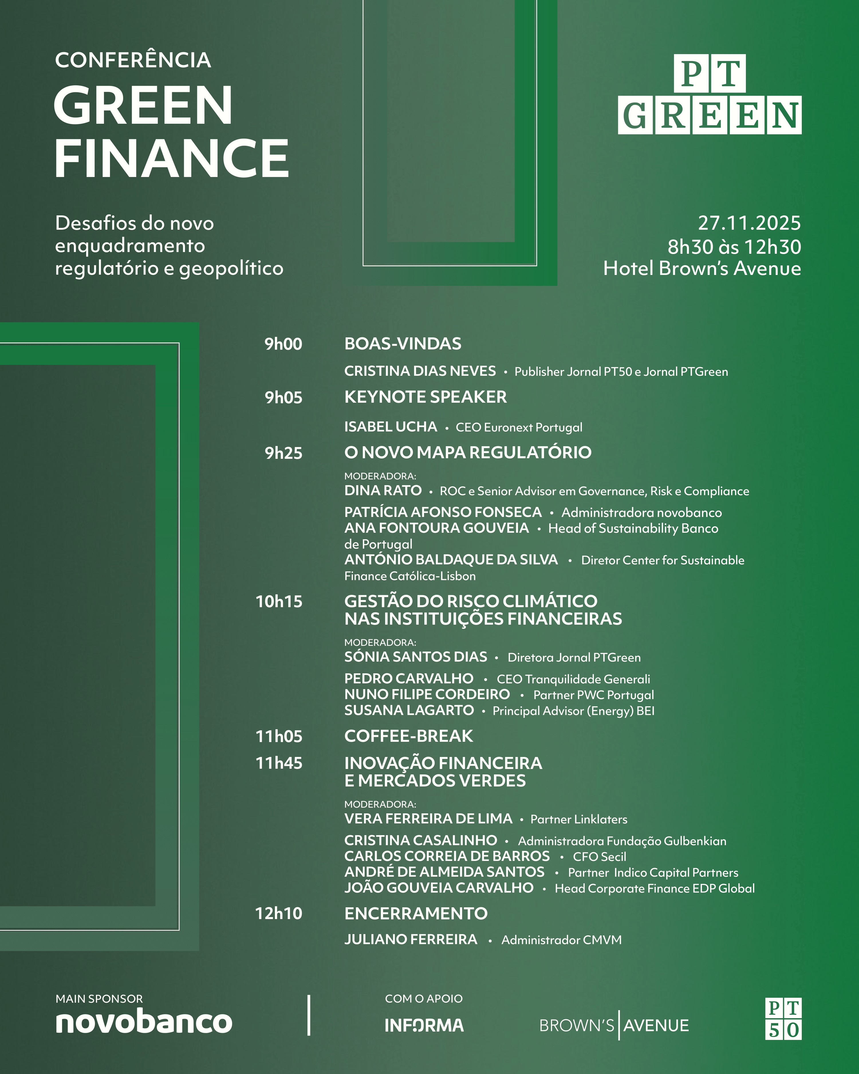Este evento reúne especialistas e líderes do setor para debater os desafios do novo enquadramento regulatório e geopolítico, bem como as oportunidades que a transição sustentável oferece ao sistema financeiro.
